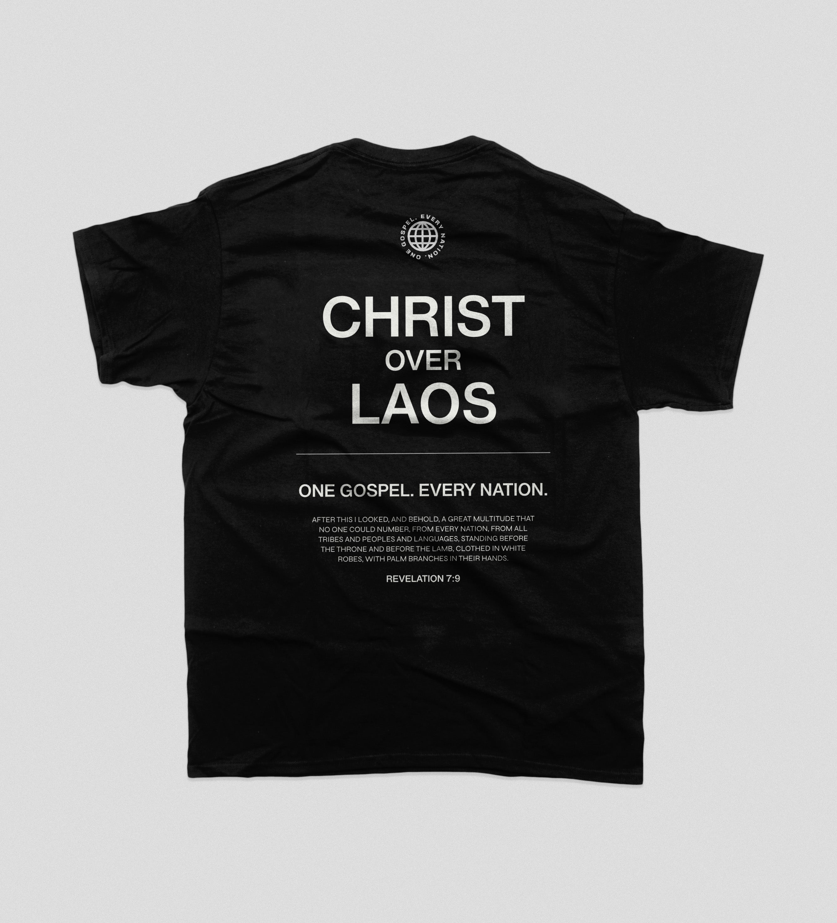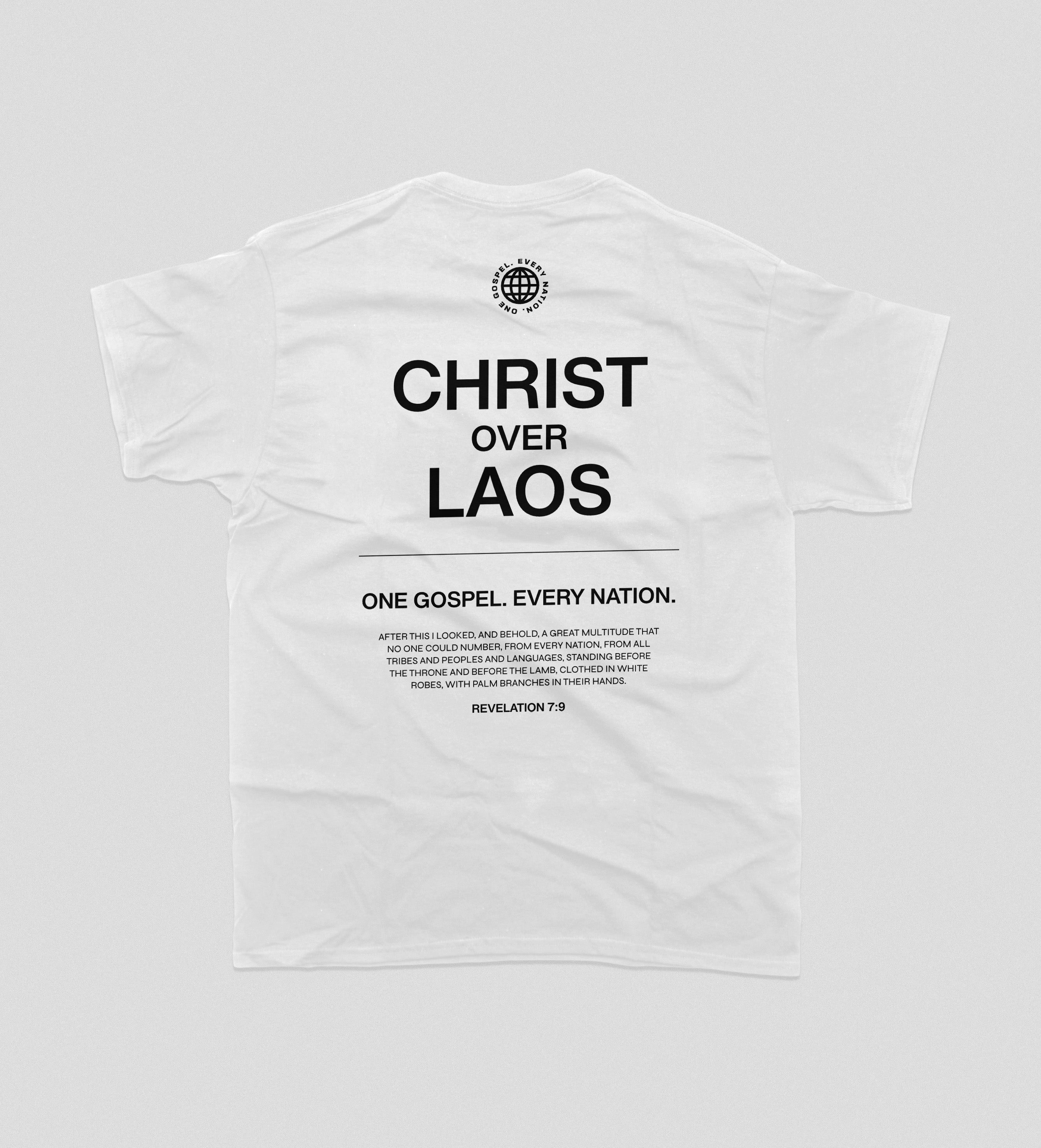 Part of the Christ over Nations Collection, this piece represents Laos—declaring the name of Jesus in the Lao language across the front and proclaiming “Christ Over Laos” on the back. Inspired by Revelation 7:9, this design honors the unity of believers from every tribe and tongue, all standing before the Lamb.